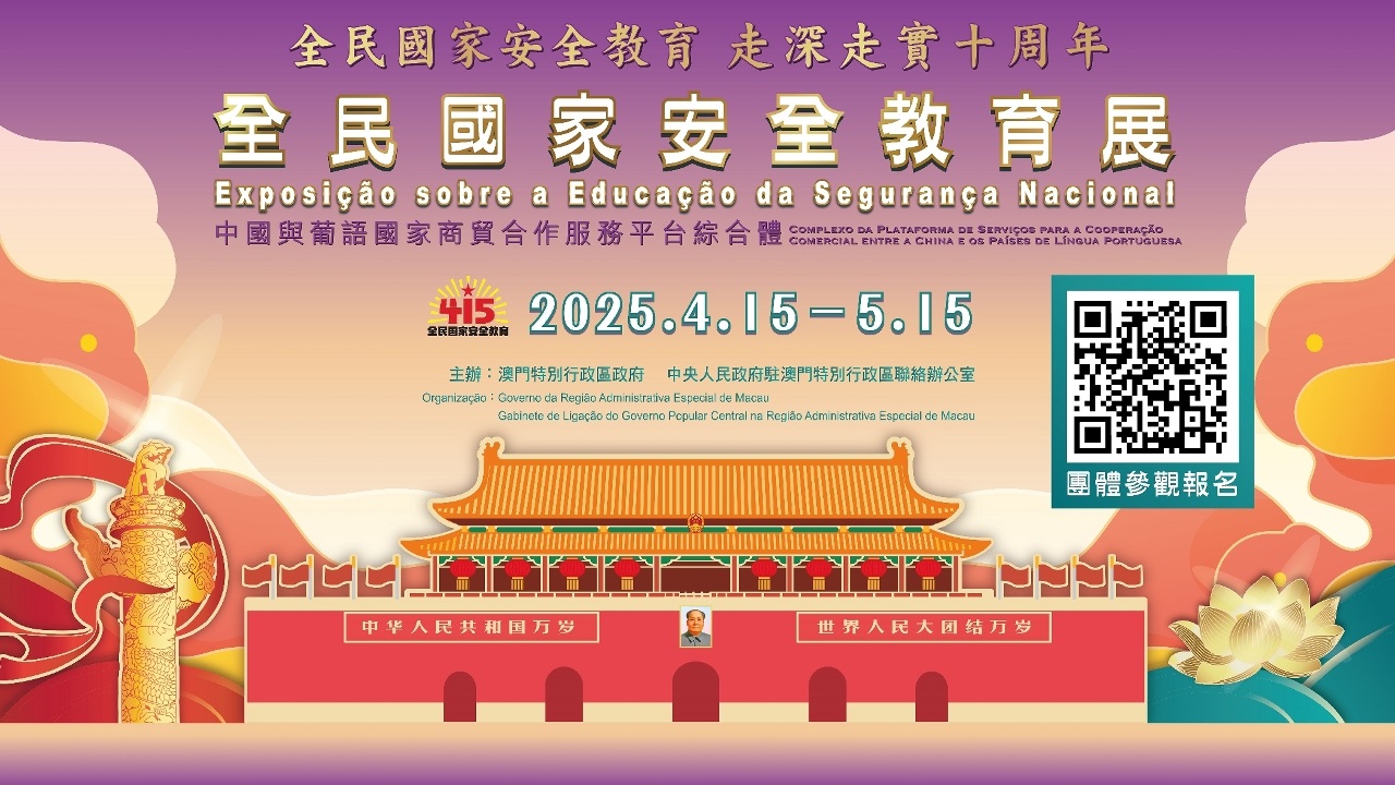 澳門特別行政區政府與中央人民政府駐澳門特別行政區聯絡辦公室將連續第八年舉辦“全民國家安全教育展”,歡迎市民在4月15日至5月15日期間,前往澳門孫逸仙大馬路 ...