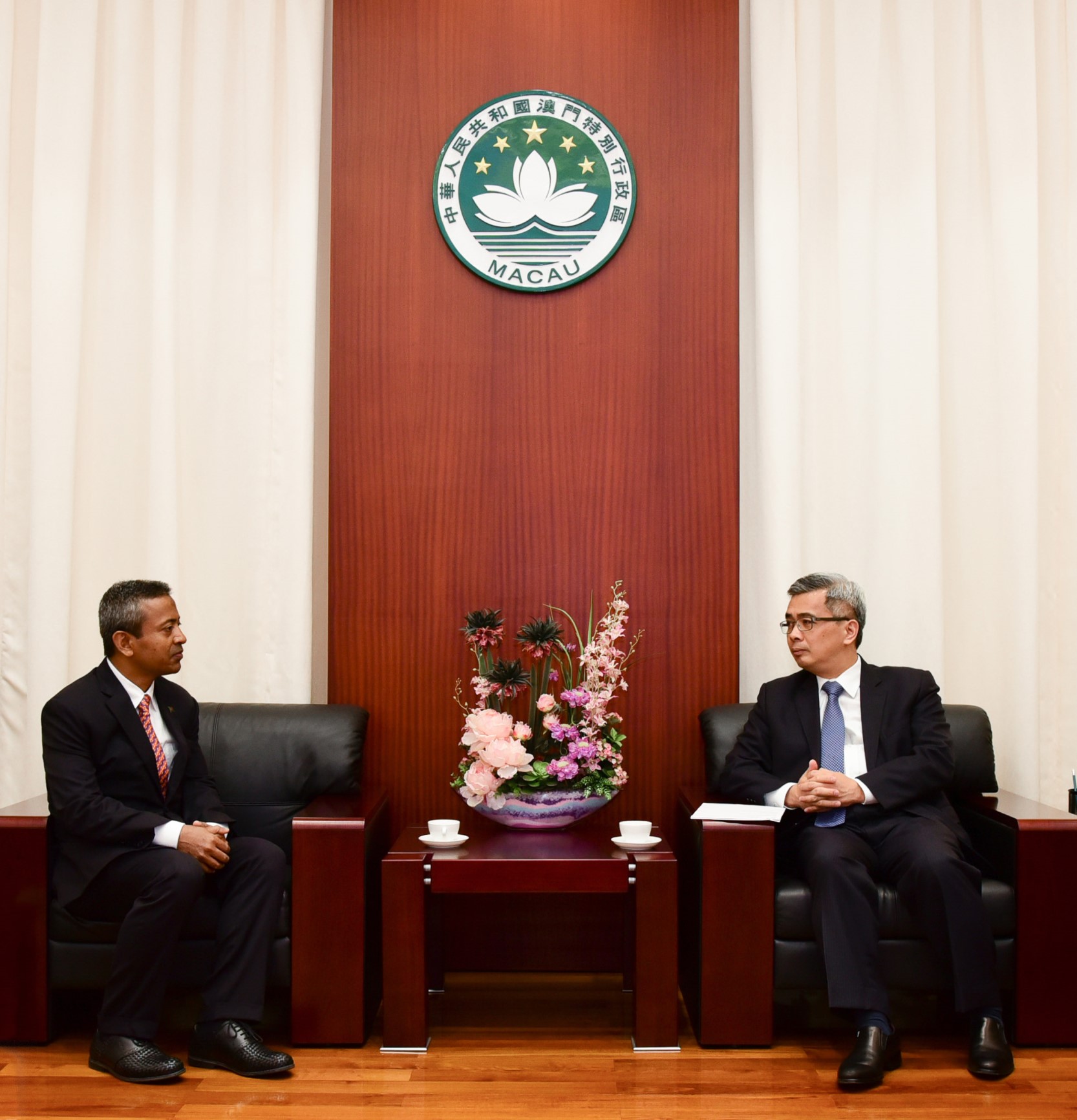 葡萄牙駐澳門及香港總領事歐冠溢(Paulo Jorge Sousa da Cunha Alves)禮節性拜訪保安司黃少澤司長,並期望葡萄牙與澳門特區繼續保持友好的合作關係。