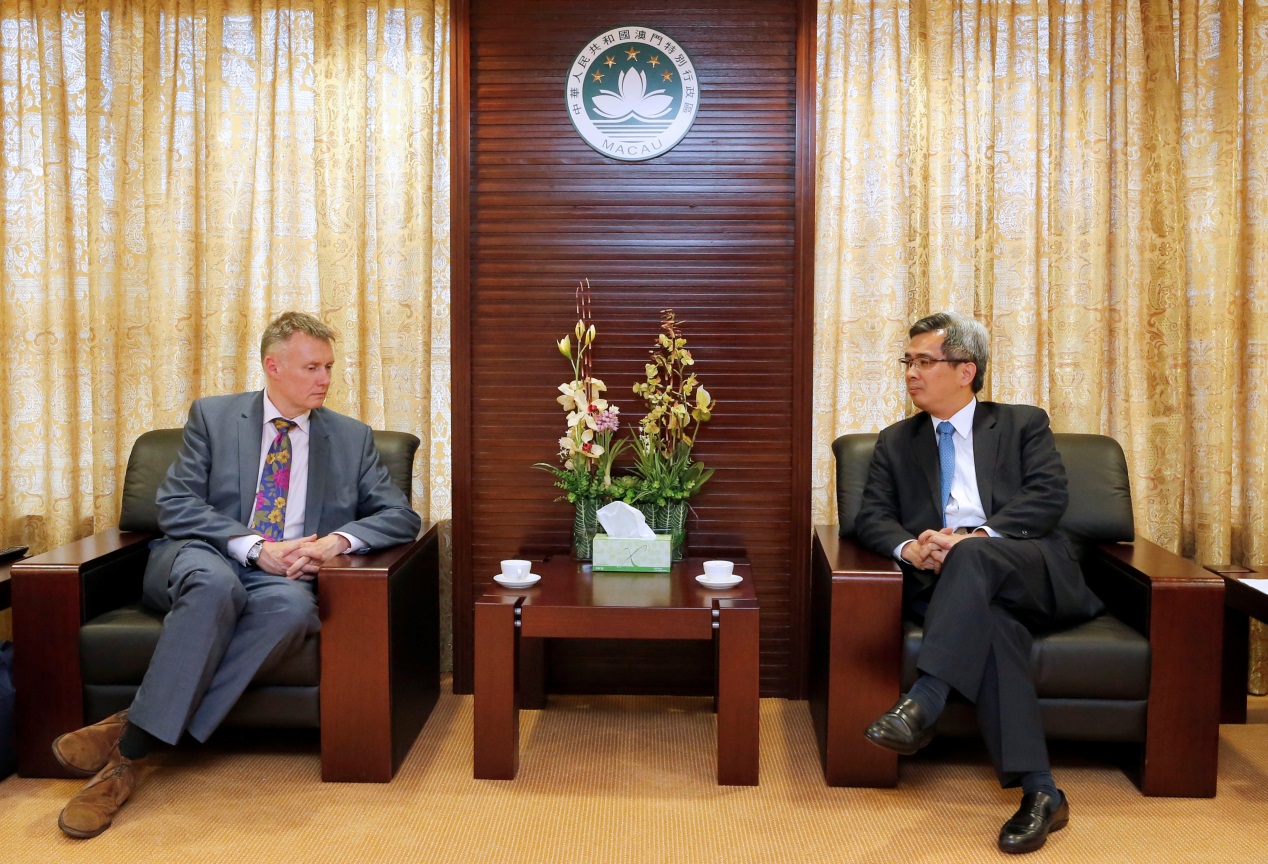 英國國防和安全組織、英國貿易及投資處東北亞和太平洋區助理總監Paul Ellis拜會保安司司長黃少澤,商討如何加強警務合作及交流,並就共同關心的問題交換意見。