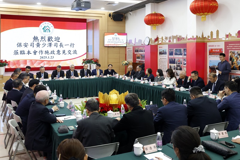 保安司司長黃少澤今(23)日拜訪澳門歸僑總會並舉行座談,就編製保安範疇2025年度施政方針聽取意見和建議。