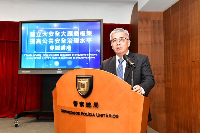 為提升本澳城市安全治理水平,強化民防架構及相關部門對應急管理的認識,警察總局於2月1日在北安出入境事務大樓舉辦了 “建立大安全大應急框架 提高公共安全治理水平”專題講座及《澳門特別行政區防災減災十年規劃(2019-2028年)》(以下簡稱《防災減災十年規劃》)工作座談會,邀請了原國務院參事、原國家減災委專家委副主任閃淳昌擔任專題講座主講嘉賓及參與有關座談會作經驗指導。