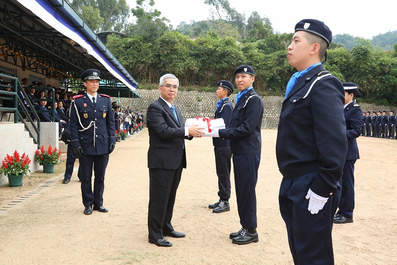 畢業典禮於上午11時30分舉行,保安司司長黃少澤蒞臨主禮,向學員頒發畢業證書,並連同嘉賓向優秀學員頒發保安學員培訓課程獎、中文獎、葡文獎、射擊獎、體育獎及越野跑獎項。澳門保安部隊高等學校校長黃子暉致辭時向畢業學員表達祝賀,勉勵學員憑着堅定的意志和毅力完成培訓課程,實現志向,開展職業生涯的新篇章,期望學員貫徹始終抱持堅定信念,維護國家安全,奉行保安當局提出的三個警務理念,“主動警務”、“社區警務”和“公關警務”,切實履行職責,廉潔奉公,全心全意服務社會、服務市民,令澳門更加安全、和諧。