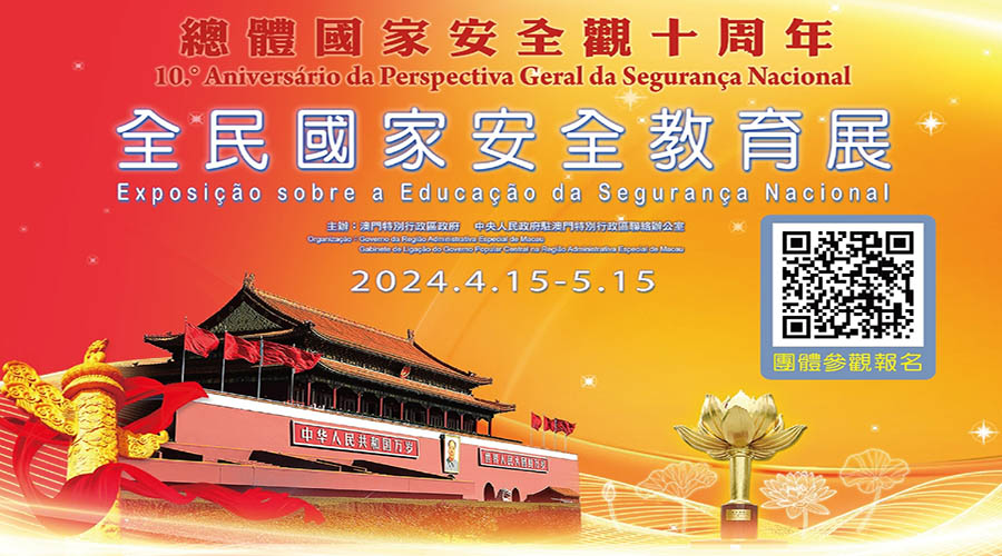 今年4月15日是我國第九個“全民國家安全教育日",澳門特別行政區政府與中央人民政府駐澳門特別行政區聯絡辦公室連續第七次舉辦“全民國家安全教育展",展期由4月15日至5月15日,展覽地點為新口岸畢仕達大馬路澳門綜藝館,歡迎市民前往參觀,團體則可透過網上報名參觀及預約導賞服務。