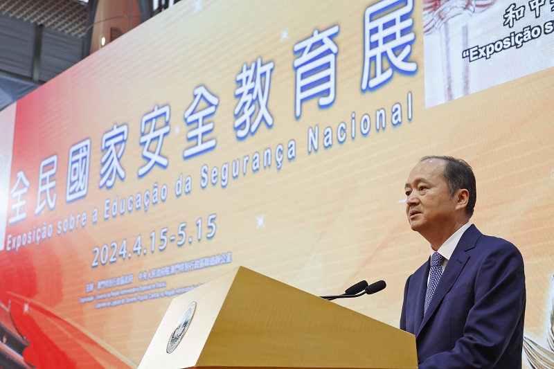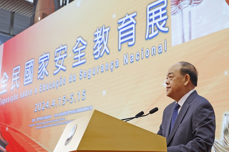 澳門特別行政區維護國家安全委員會主席、行政長官賀一誠今(15)日在“全民國家安全教育展”開幕禮上致辭時表示,十年來,總體國家安全觀得到不斷的豐富和發展。在總體國家安全觀的創新引領和科學指導下,澳門特區政府帶領社會各界圑結奮進,持續健全特區維護國家安全體系,積極統籌特區的安全與發展,致力築牢維護國家總體安全的防線,保持澳門社會的長期繁榮穩定。