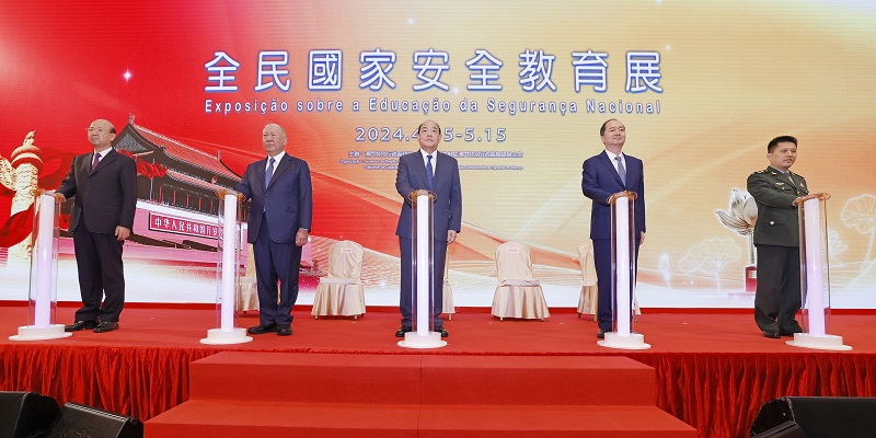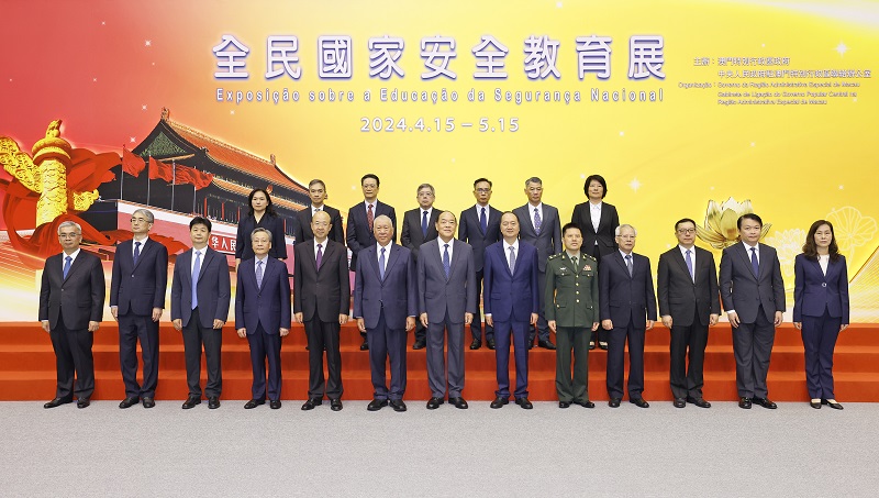 由澳門特別行政區政府與中央人民政府駐澳門特別行政區聯絡辦公室合辦的“全民國家安全教育展”上午在澳門綜藝館揭幕。開幕禮由澳門特別行政區維護國家安全委員會主席、行政長官賀一誠,全國政協副主席何厚鏵,澳門特別行政區維護國家安全委員會安全事務顧問、中央人民政府駐澳聯絡辦公室主任鄭新聰,外交部駐澳特派員公署特派員劉顯法及中國人民解放軍駐澳門部隊政治委員林慶華等主禮,出席的政府官員及社會各界人士逾380人。