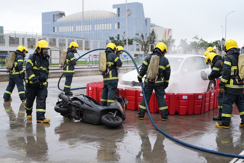 為持續强化社會大眾防災減災意識,提升本澳應對自然災害綜合聯動效能,民防架構於今(27)日舉行代號“水晶魚2024”年度颱風民防演習,演習由政府部門、社團及專業機構,以及市民共同參與,目的是透過年度民防演習,不斷提升社會各界與民防架構應對災害的默契和協同能力,喚起市民大眾對災害預防的重視,加強社區防災的韌性。演習由保安司司長、聯合行動指揮官黃少澤主持,警察總局局長梁文昌、澳門海關關長黃文忠,聯同各民防架構部門的領導或主管代表共同參與演習,亦邀請中國人民解放軍駐澳門部隊戴勁松副司令員出席。