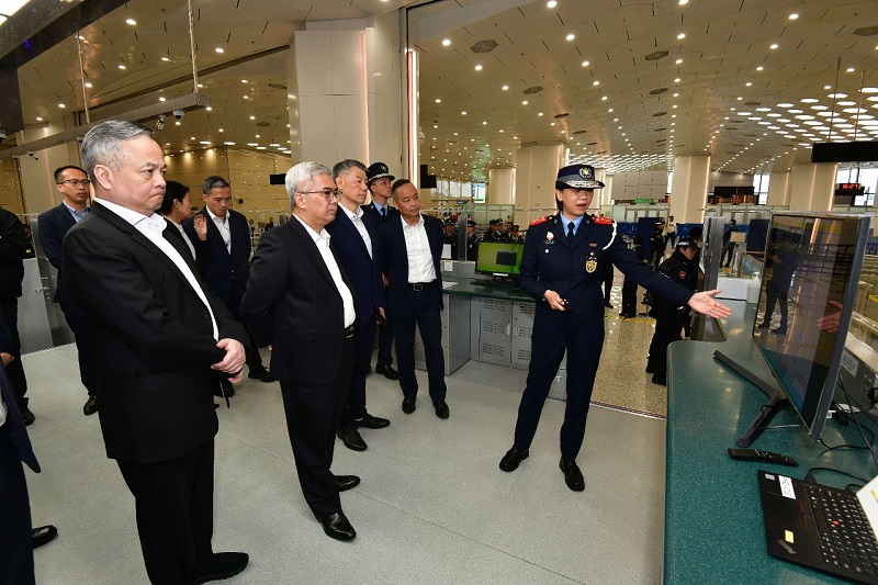 保安司司長一行首先到大三巴牌坊及新馬路一帶,視察現場人流情況及分流措施,檢視有關警務部署,同時關注交通改道及疏導安排,了解人流預警預測系統及人潮管制措施的運作,並指示必須確保旅遊區的安全有序。及後到橫琴口岸澳門口岸區視察通關情況,了解新春期間的優化措施、出入境車道的運作情況,並巡視海關查驗區,了解關檢工作情況,並指示各部門繼續努力確保通關暢順。期間,黃司長鼓勵各部門須繼續秉持“以民為本”的服務理念,展示警方的專業形象,讓居民和旅客倍感安心。