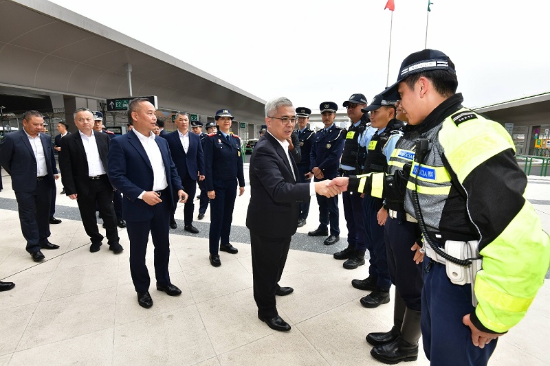 巡視期間,黃司長沿途慰問執勤中的同事,感謝同事們在節慶日子的盡忠職守和辛勤付出,肯定他們對澳門治安所作的貢獻及送上節日祝福。