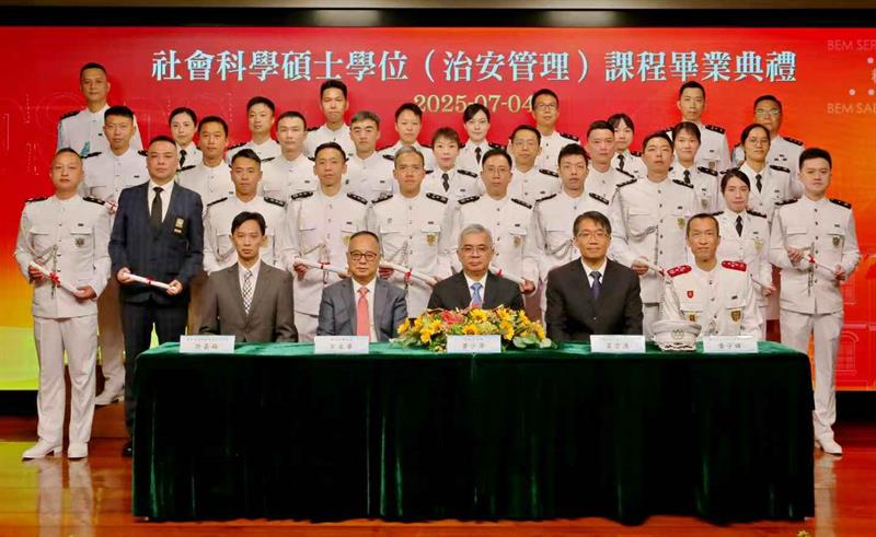 上午9時45分,於保安高校禮堂舉行社會科學碩士學位(治安管理)課程畢業典禮,典禮由保安司司長黃少澤主禮,並邀請到警察總局局長梁文昌、澳門海關關長何浩瀚出席。黃子暉校長致辭時表示,首屆社會科學碩士學位(治安管理)課程的成功舉辦,標誌着保安高校的警務教育踏上新里程。學員憑着對警務工作的熱忱和自我期許,認真修讀並且完成碩士課程嚴格的課業要求。期望畢業學員能學以致用、一展所長,以專業和用心回饋社會,全力保障澳門社會長治久安。首屆修讀社會科學碩士學位(治安管理)課程學員共有30人,分別來自警察總局、澳門海關、治安警察局、司法警察局和澳門保安部隊高等學校,學員在嘉賓手中接過畢業證書,完成為期2年的研習,提升應對社會安全及防控工作之綜合管理能力。