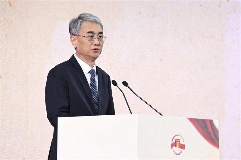 張永春致辭時首先代表特區政府向在抗日戰爭中英勇犧牲的先烈致以最崇高的敬意,向在戰爭中不幸遇難的同胞寄予最深切的哀思。他表示,80年前,中國人民通過14年浴血奮戰,取得抗日戰爭的偉大勝利,這是中華民族從屈辱走向復興的歷史轉折點,彰顯了中華兒女在危難時刻的無比勇氣和民族精神,更為中國重新確立世界大國地位築牢了根基。