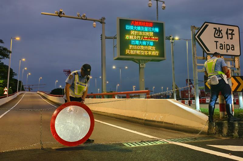 交通方面,於9月23日 下午3時30分起,港珠澳大橋澳門口岸西停車場免費開放予輕型汽車停泊;六家綜合度假休閑企業開放合共約3,680個免費車位供市民使用;同日下午6時30分開始,27個位處低窪地區的公共停車場關閉;同時,封閉四條連接澳門和氹仔的跨海大橋及蓮花大橋;西灣大橋下層行車道則於下午6時開放予輕型客車和特許車輛通行,而在九號及十號風球期間,基於安全理由一度採取了封閉措施。隨著地球物理氣象局於9月24日下午4時改發八號風球,西灣大橋下層行車道恢復開放。直至晚上11時,氣象局改發三號風球,四條跨海大橋及蓮花大橋於晚上11時重新開放,西灣大橋下層則於所有車輛離開後關閉。