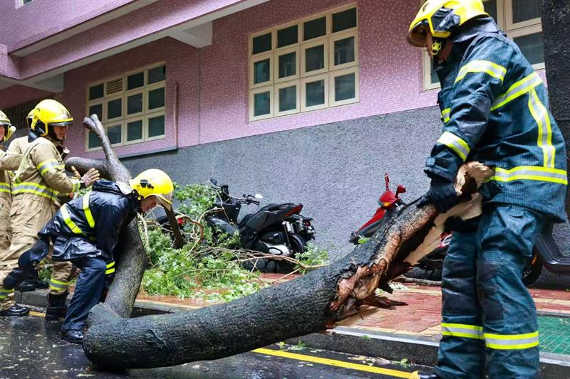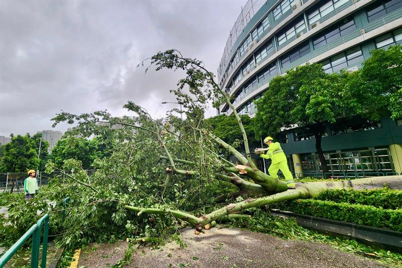 事故統計方面,民防行動中心共錄得259宗事故報告,主要涉及處理有墮下風險的物件147宗、塌樹及其他倒塌物71宗、地盤設施倒塌6宗、火警23宗(當中大部分為電箱冒煙)、被困11宗。期間共錄得8宗因颱風而受傷的個案,其中1人重傷,需留院治療,沒有生命危險,另外7人受輕傷。
