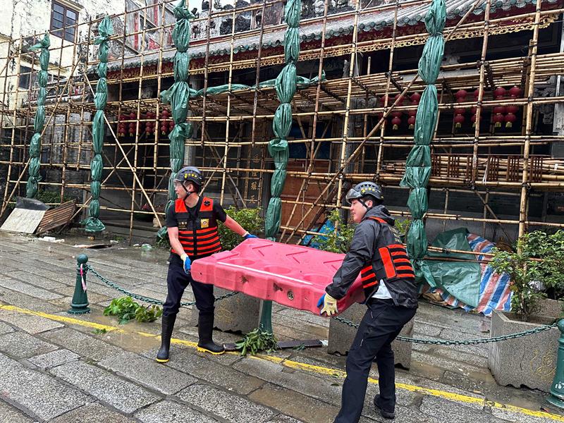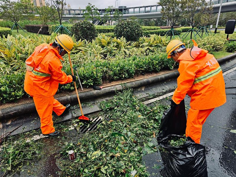 在清障行動方面,民防行動中心迅速統籌五大疏散撤離部門和市政署,在安全許可的前提下,對全澳道路進行安全檢視。及後,於三號風球期間,聯動澳門建築機械工程商會和中國建築工程(澳門)有限公司,展開全澳多區的清障行動,運用大型機械設備,快速移離倒塌樹木和清除道路障礙物,全力確保本澳主要幹道通行順暢。
