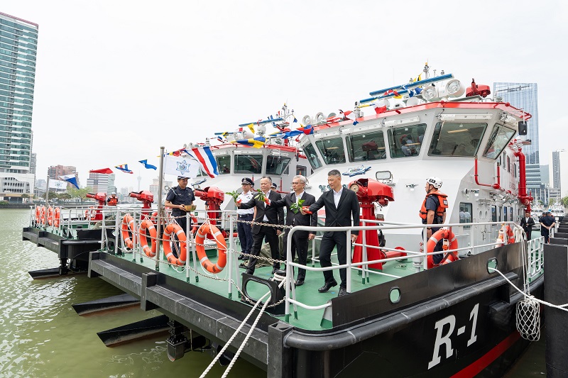 本月30日,由保安司司長黃少澤主禮,警察總局局長梁文昌和海關關長何浩瀚的見證下,澳門海關為兩艘新救援船舉行傳統的祈福儀式。祈福儀式旨在為新船啟用祈求平安順利,同時展示澳門海關在提升海域救援能力及保障公共安全方面的堅定承諾。