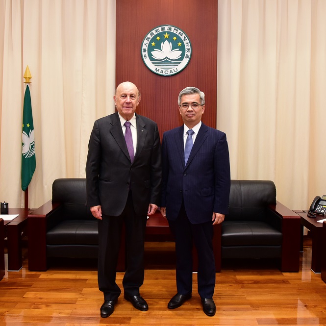 保安司黃少澤司長會晤來訪的澳門前總督韋奇立將軍,黃司長向其介紹了澳門回歸以來的治安狀況和發展情況。