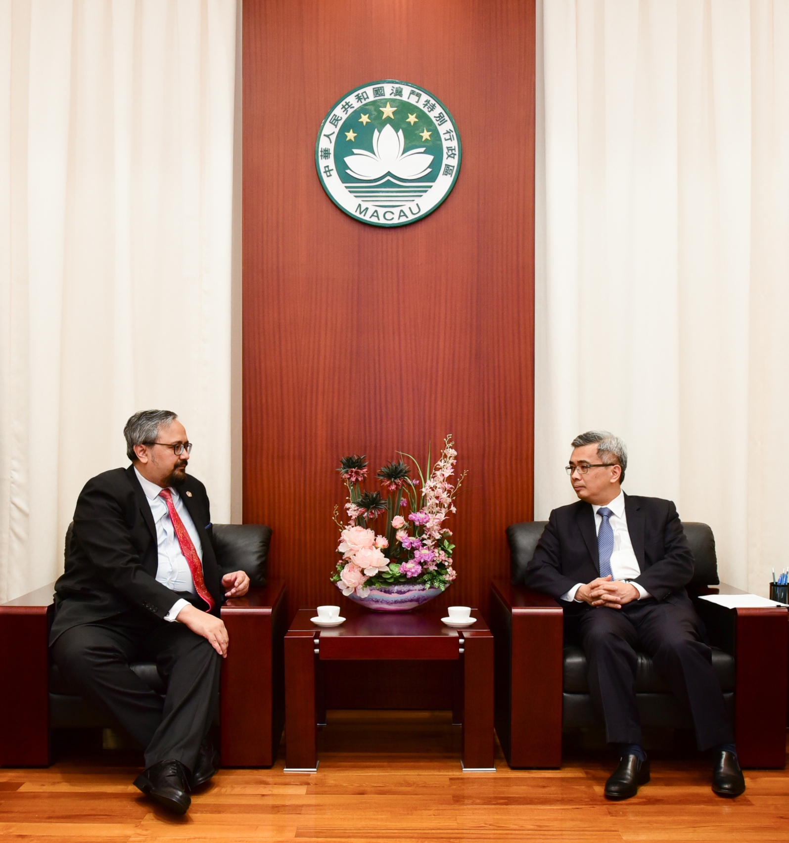 受行政長官閣下委託,保安司司長黃少澤以代理行政長官身份接受馬來西亞駐香港總領事 Mr. Tengku Sirajuzzaman bin Tengku Mohamed Ariffin辭行拜會。