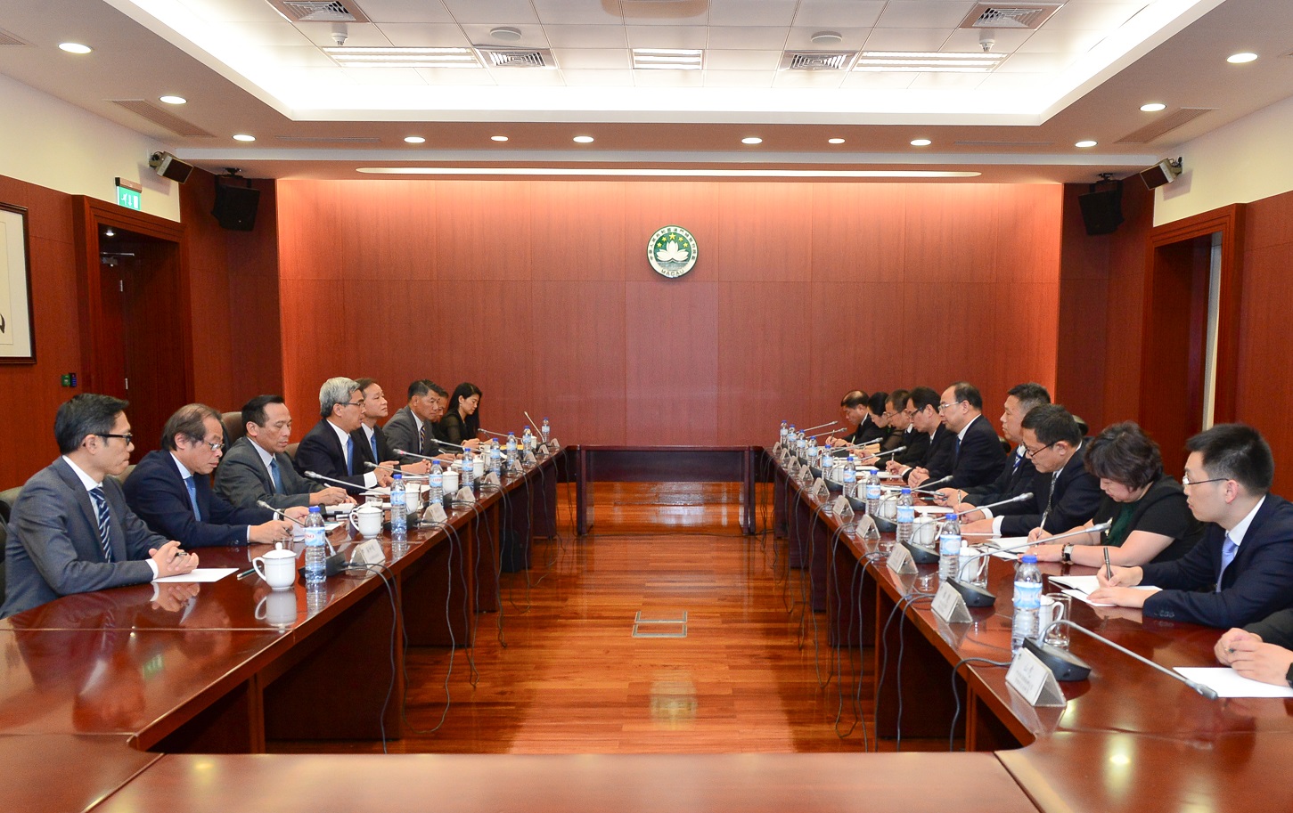 Visita de uma delegação chefiada pelo Membro Permanente do Comité Providencial de Zhejiang e Director da Directoria Providencial de Segurança Pública de Zhejiang, Xu Jia Ai, à Secretaria para a Segurança para um encontro com o Secretário para a Segurança, Wong Sio Chak, e o Comandante-geral dos SPU, Ma Io Kun, bem como com outros participantes