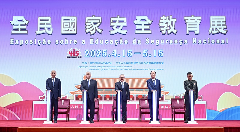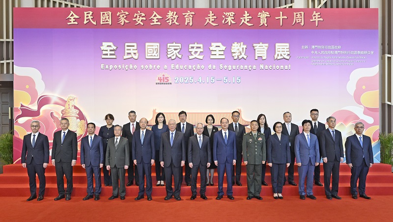 A cerimónia de inauguração da Exposição sobre a Educação da Segurança Nacional, co-organizada pelo Governo da Região Administrativa Especial de Macau (RAEM) e o Gabinete de Ligação do Governo Popular Central na RAEM, decorreu, esta manhã (15 de Abril), no Complexo da Plataforma de Serviços para a Cooperação Comercial entre a China e os Países de Língua Portuguesa. O Chefe do Executivo e presidente da Comissão de Defesa da Segurança do Estado da RAEM, Sam Hou Fai, afirmou, ao discursar, que além de reforçar ainda mais a confiança de que a nossa grande Pátria vai liderar todo o povo chinês a ultrapassar os desafios e as dificuldades, devemos compreender profundamente a importância da segurança geral, aplicar com firmeza a perspectiva geral da segurança nacional e continuar a promover a construção do sistema, do mecanismo e do regime jurídico de Macau para salvaguardar a segurança nacional.