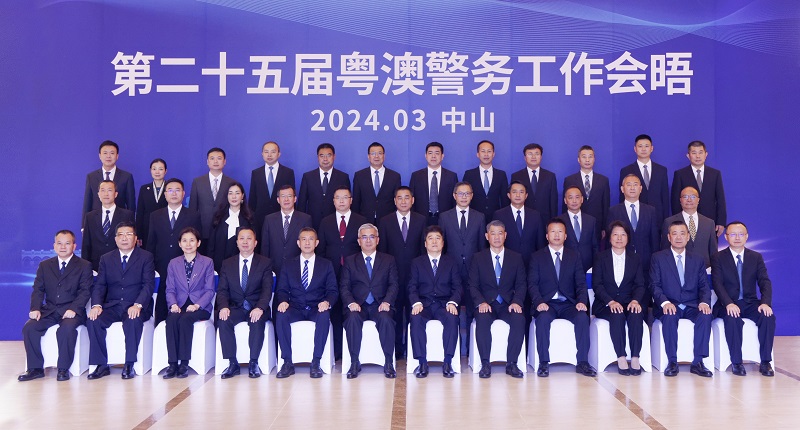O “25.º Encontro de Trabalhos Policiais entre Guangdong e Macau” decorreu em 20 de Março de 2024 em Zhongshan, Província de Guangdong. O Secretário para a Segurança, Wong Sio Chak, liderou a delegação que participou no encontro, durante o qual houve lugar ao intercâmbio e negociação relativos ao plano de cooperação policial do ano presente com a delegação da Polícia de Guangdong, chefiada pelo Vice-Governador da Província de Guangdong e Director da Directoria Provincial de Segurança Pública de Guangdong, Liu Guozhou. No encontro, ambas as partes fizeram um balanço dos resultados da colaboração do ano passado, relataram as situações relacionadas com segurança, combate à criminalidade e passagem fronteiriça em 2023, entre outros assuntos. Relativamente ao reforço dacolaboração de medidas comuns para combate contra as burlas na internet, troca ilegal de dinheiro, tráfico de droga, crimes económicos transfronteiriços, actividades de migração ilegal, terrorismo, grupos de prostituição e actividades de contrabandistas, entre outras actividades ilegais transfronteiriças, foram discutidas as medidas comuns e foi salientada a colaboração da defesa dasegurança para as actividades importantes deste ano.