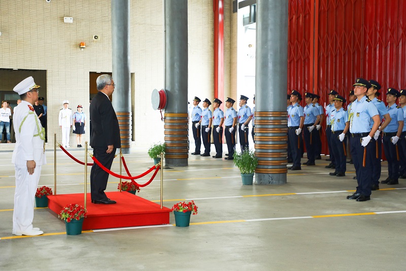 O Corpo de Bombeiros (CB) efectuou, na manhã do dia 29 de Abril do corrente ano, três actividades principais no Comando e Posto Operacional do Lago Sai Van do CB, designadamente: a “cerimónia de imposição de insígnias de mérito comportamental e atribuição de desempenho excelente”, a “cerimónia de atribuição de louvores a bons cidadãos” e o “seminário temático de combate a incêndios”. Convidou-se, na cerimónia, o Secretário para a Segurança, Wong Sio Chak, como convidado, também foram convidados o 2.º Comandante do chefe da delegação do Corpo de Bombeiros Nacional e Resgate, Xu Zhongshun, o Subdirector dos Serviços de Ligação para os Assuntos Policiais do Gabinete de Ligação do Governo Popular Central na Região Administrativa Especial de Macau, Wang Qianjin e as delegações provenientes da Força de Protecção Civil de Singapura e da Associação de Bombeiros da Malásia.