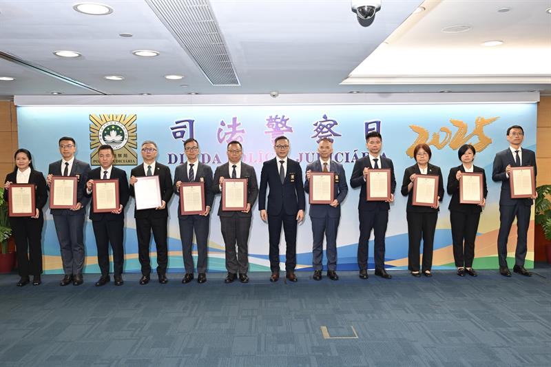 A Polícia Judiciária realizou hoje (dia 11), a cerimónia de entrega de prémios do “Dia da Polícia Judiciária”, em que foram louvados publicamente os funcionários e subunidades que tiveram um desempenho excelente e, também, foi feito o balanço do trabalho desenvolvido e os resultados alcançados no âmbito da defesa da segurança nacional, da prevenção e do combate ao crime e do impulsionamento do policiamento de proximidade ao longo do ano passado.