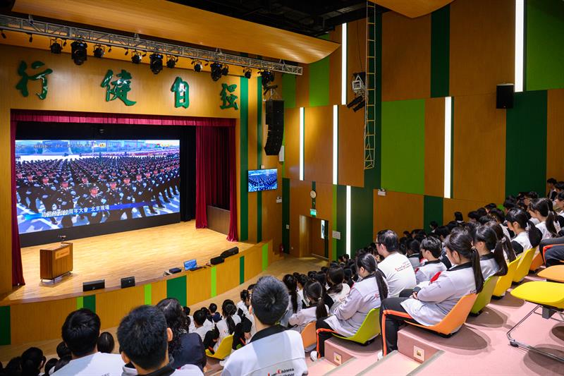 A transmissão em directo da cerimónia comemorativa realizou-se, esta manhã, no Pavilhão Polidesportivo da Universidade Politécnica de Macau e no Complexo Desportivo da Universidade de Macau. Estiveram presentes na sessão da Universidade Politécnica de Macau o Chefe do Executivo interino, André Cheong, o subdirector do Gabinete de Ligação do Governo Popular Central na RAEM, Zhang Yingjie, o comissário do Ministério dos Negócios Estrangeiros da RPC na RAEM, Liu Xianfa, o secretário para a Segurança, Wong Sio Chak, a secretária para os Assuntos Sociais e Cultura, O Lam, o comandante-geral dos Serviços de Polícia Unitários, Leong Man Cheong, responsáveis governamentais, individualidades dos sectores da sociedade e representantes dos jovens estudantes.