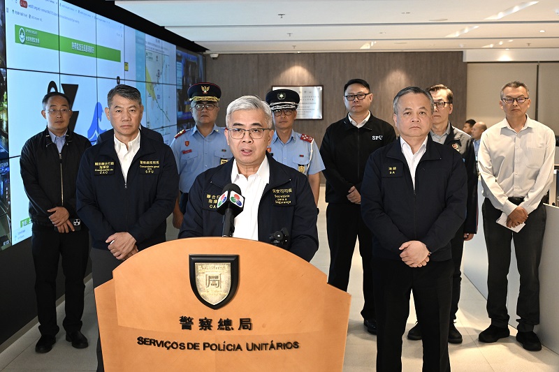 O secretário para a Segurança e comandante de Acção Conjunta, Wong Sio Chak, convocou, nesta madrugada (5 de Outubro), uma reunião no Centro de Operações de Protecção Civil (COPC), para auscultar a apresentação dos membros da estrutura de protecção civil sobre os trabalhos em resposta ao ciclone tropical “Matmo”, e instruir todos os membros a cooperarem plenamente na execução de diversos trabalhos emergenciais, para garantir a segurança da vida e dos bens dos residentes e visitantes.