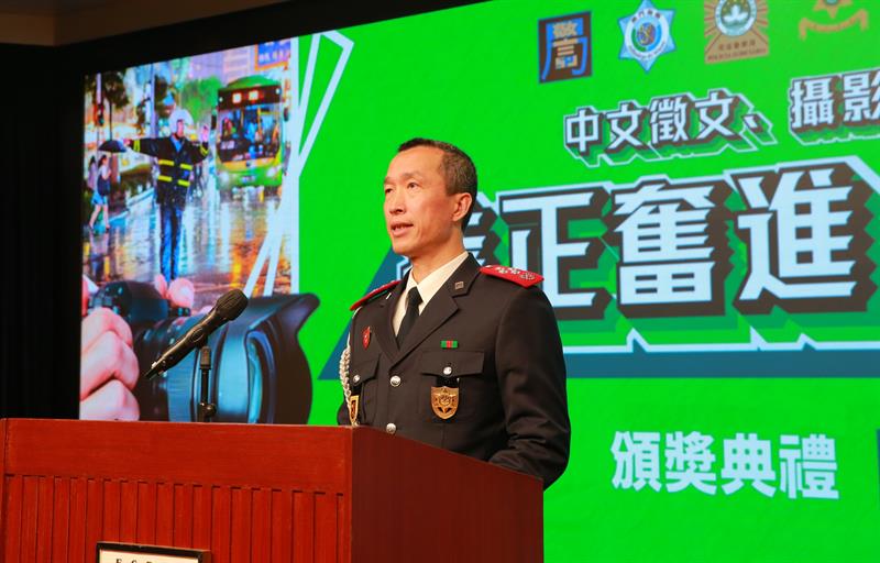 Os representantes dos membros da comissão da avaliação dos três concursos também proferiram discursos. O representante dos membros da comissão da avaliação do concurso de composição em língua chinesa, Sr. Kwong Iu Lam, afirmou que os concorrentes baseam-se nas suas próprias experiências e observações de amigos, reflectem eficazmente a integridade, o altruísmo e o espírito corajoso das forças e serviços de segurança nos seus trabalhos, em consonância com o tema do concurso, no sentido de alcançar o objectivo de servir a população através da aplicação da lei. O representante dos membros da comissão da avaliação do concurso de fotografia, Sr. Ma Chi Son, salientou que o concurso de fotografia desempenha um papel importante na interacção entre as forças e serviços de segurança e a comunidade. Através de obras fotográficas, é possível compreender de forma mais intuitiva os trabalhos diários, a dedicação e o esforço dos agentes policiais. As obras funcionam como um espelho, que reflectem o sentido de missão e responsabilidade dos agentes, demonstrando a sua dedicação altruísta e espírito corajoso perante diversos desafios. O representante dos membros da comissão da avaliação do concurso de vídeo de curta-metragem, Sr. Li Zisong, afirmou que os concorrentes usaram a câmara para contar histórias e transmitir emoções através de imagens, interpretando vividamente o espírito das forças e serviços de segurança em servir a população através da aplicação da lei. Os trabalhos vencedores não são apenas expressões de tecnologia e criatividade, mas também a melhor interpretação visual do espírito de “Persistir no caminho certo para maior avanço e aplicar a lei em prol da população”, prosseguido pelas forças e serviços de segurança de Macau.